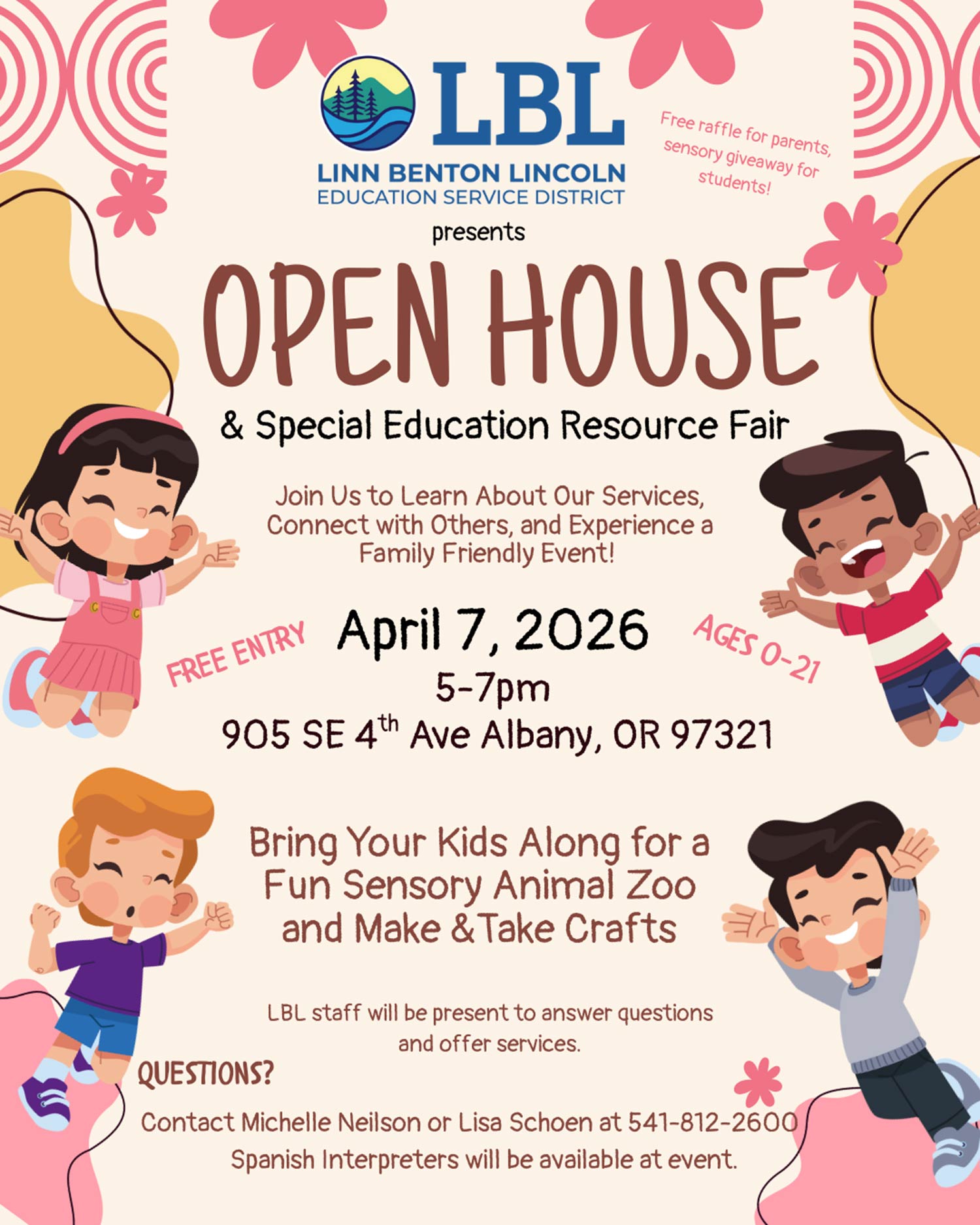 Join us to learn about our services, connect with others, and experience a family friendly event! Bring your kids along for a fun sensory animal zoo, and make & take crafts!